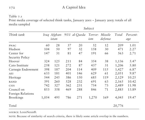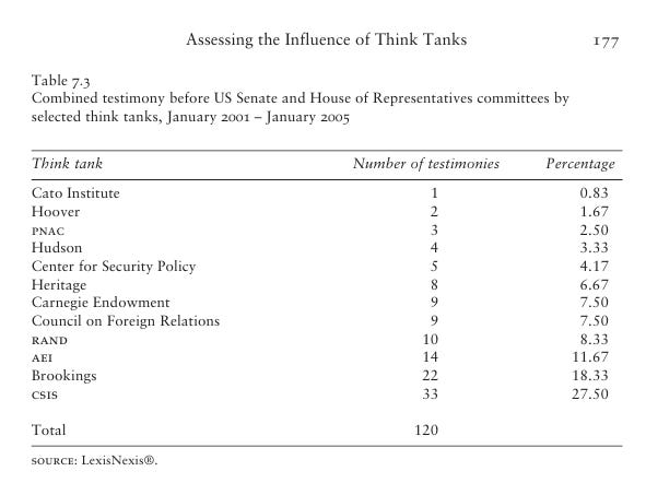 Another thing to point out is when people talk about Neocons they mainly are talking about Jews, however there is almost always a gentile counterpart one could name drop. For instance, many will bring up PNAC, the Clean Break memo, the Defense Planning Guidance of 2002, Rebuilding America’s Defenses, etc. but all of these organizations or papers or what have you had non Jewish involvement (with the exception of the memo but that was essentially a letter to Netanyahu from some American Neocon Jews to promote the Jordanian king as possible ruler of Iraq and didn’t focus on Iraq all that much also advocated for no more US aid to Israel among other things). The DPG of 1992 was written primarily by Zalmay Khalilzad (Afghani from Muslim background who was a collaborator with Wolfowitz on overthrowing Saddam) who remarked that Cheney told him that the document “gave us a new role in the world”.21 Rebuilding America’s Defenses was a paper produced by PNAC largely written by Thomas Donnelly (Now Giselle so a trans gentile) with the project co-chaired by Donald Kagan and Gay Schmitt (the former Jewish the latter not so). Bruce Jackson was the director of PNAC and had ties to Lockheed Martin. In fact many individuals with ties to both PNAC and Lockheed were involved directly in the Bush administration, most of whom non Jews.22 (Just odd that Likud connections to certain Jewish Neocons get highlighted but connections to weapons manufacturers are often not. Not to mention Cheney ties to Haliburton and other obvious business interests involved with oil infrastructure and contract work that people like Naomi Klein in her book Shock Doctrine discuss). The Committee for the Liberation of Iraq was also staffed by many with ties to the arms industry such as retired General Barry McCaffrey, Republican donor Julie Finley, and later advisor to John McCain, Randy Scheunemann (none of whom Jewish) as well as others.23 People also point out certain think tanks that helped push the war like AEI which certainly did have a Neocon bent, but others were cited more that, while more moderate, did at the end of the day advocate for some military invasion such as Brookings Institute staffed by Kenneth Pollack (non Neocon Jew) and Mark O’Hanlon (non Neocon gentile). I don’t have time to do a full breakdown of every person in every think tank and no doubt alot of prominent Jews were involved, but looking at these data sets one can see that the more hawkish think tanks didn’t totally dominate the arena and there was plenty of different types of think tanks involved in the media and congressional testimonies (this is not to say PNAC didn’t have an outsized role due to members of it were directly involved in the administration)